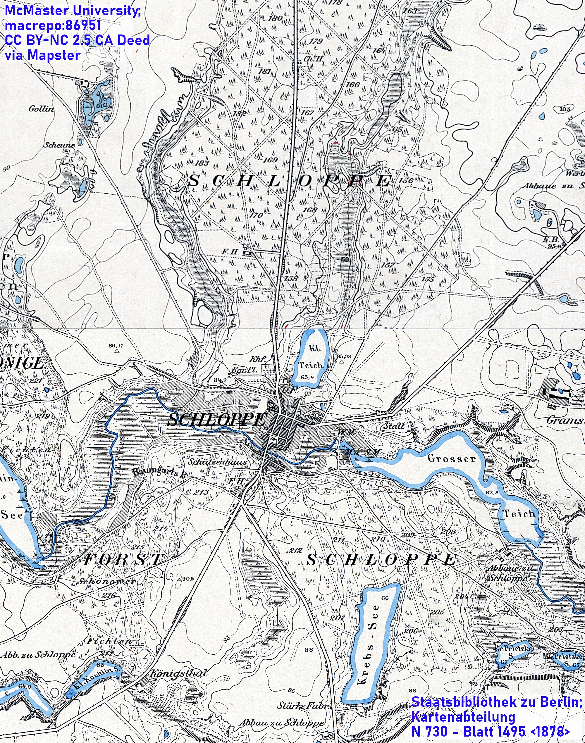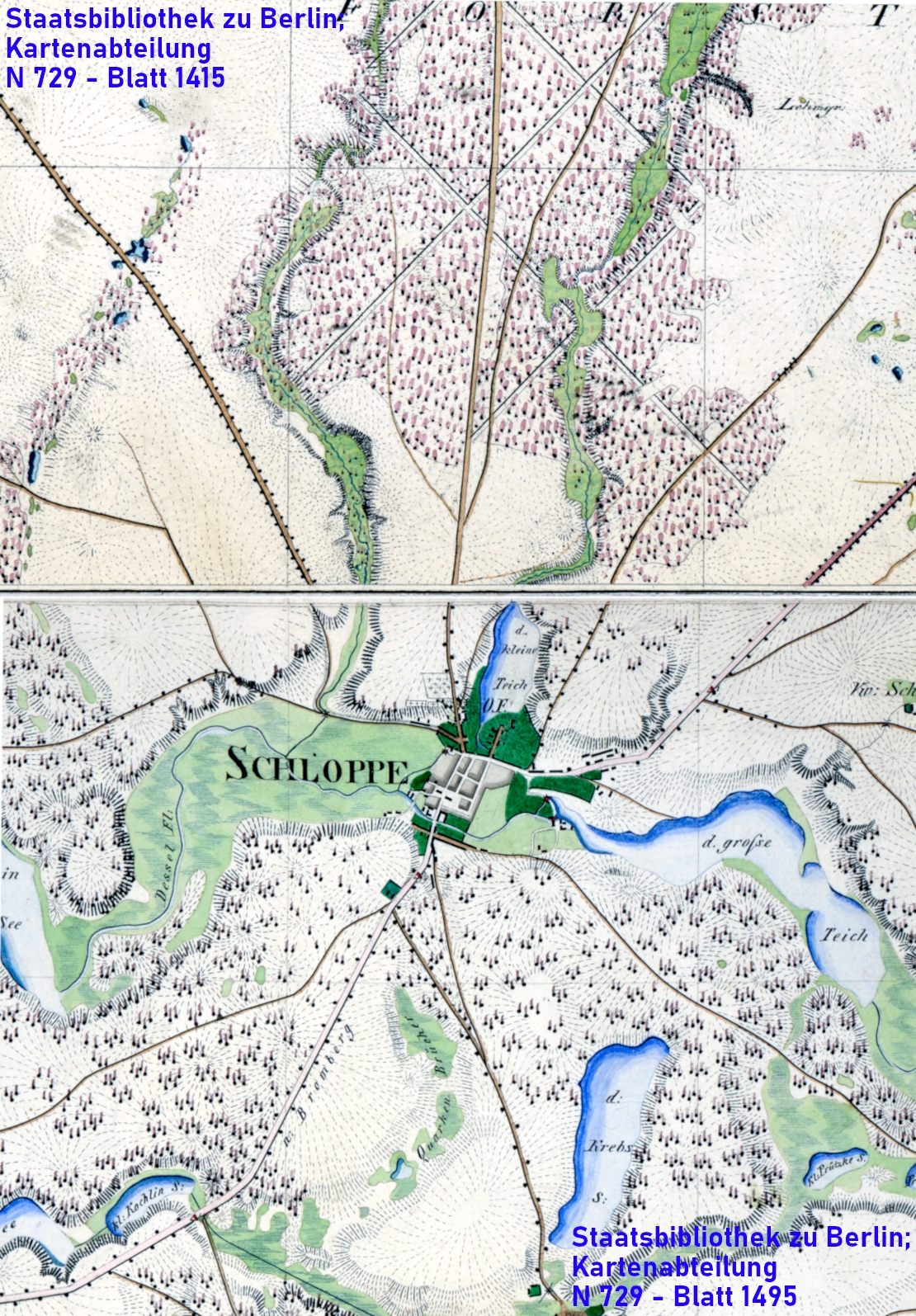 Preußische Urmesstischblätter ca. 1820-1876, Berlin, Staatsbibliothek zu Berlin – Preußischer Kulturbesitz, sygnatura SBB IIIC Kart N 729/1415 i SBB IIIC Kart N 729/1495