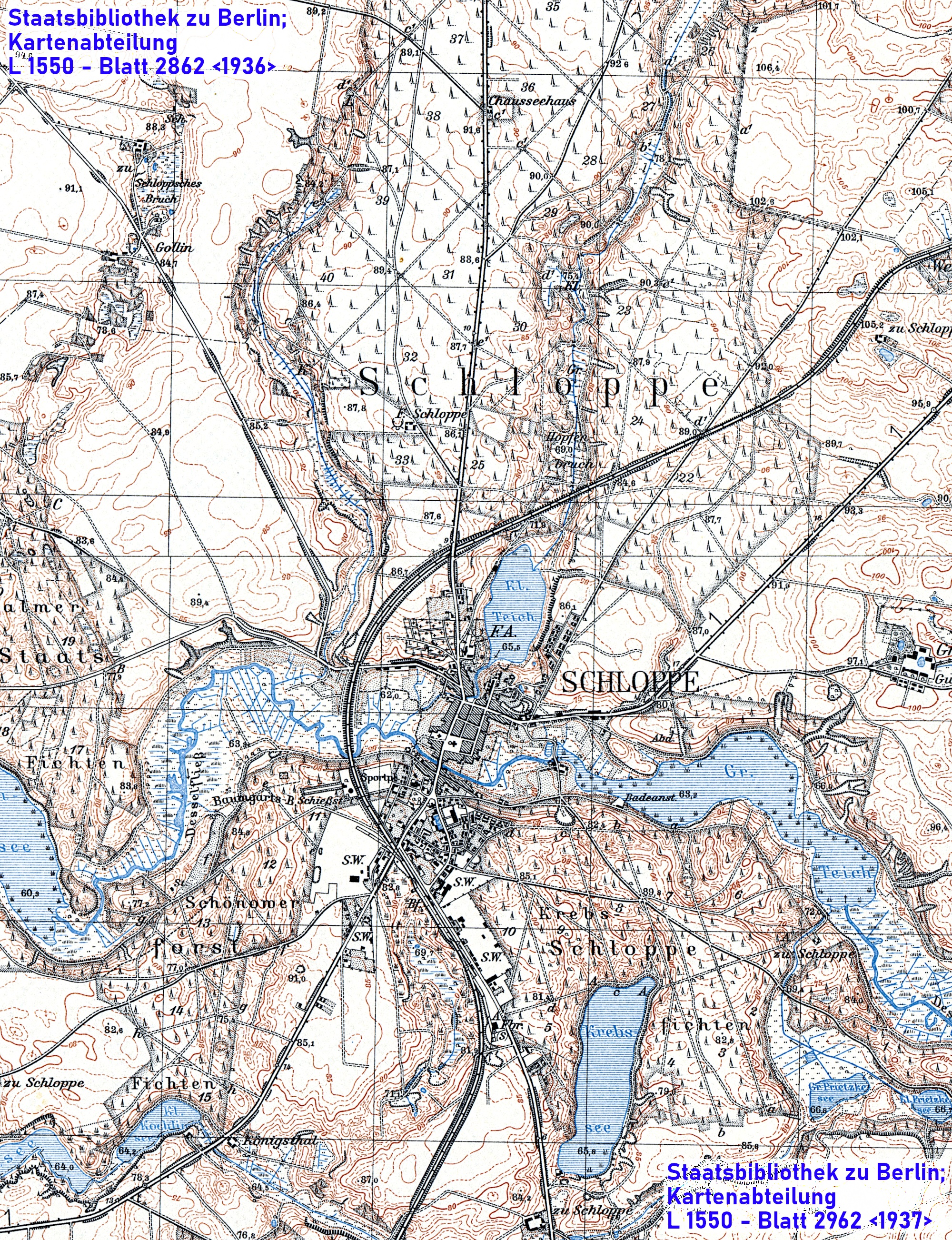 ![Fragmenty arkuszy numer 2862 [dawny1415] (Tütz [Tuczno]) i 2962 [dawny 1495] (Schloppe [Człopa]) z mapy Messtischblatt w skali 1:25000 ukazujący Człopę i jej najbliższe okolice z roku 1936 i 1937. Oryginały przechowywane w Staatsbibliothek zu Berlin; Kartenabteilung, L 1550 - Blatt 2862 oraz L 1550 - Blatt 2962 .](https://oczlopie.pl/wp-content/uploads/2023/10/Czlopa_mapa_1936_37_25k-786x1024.jpg)