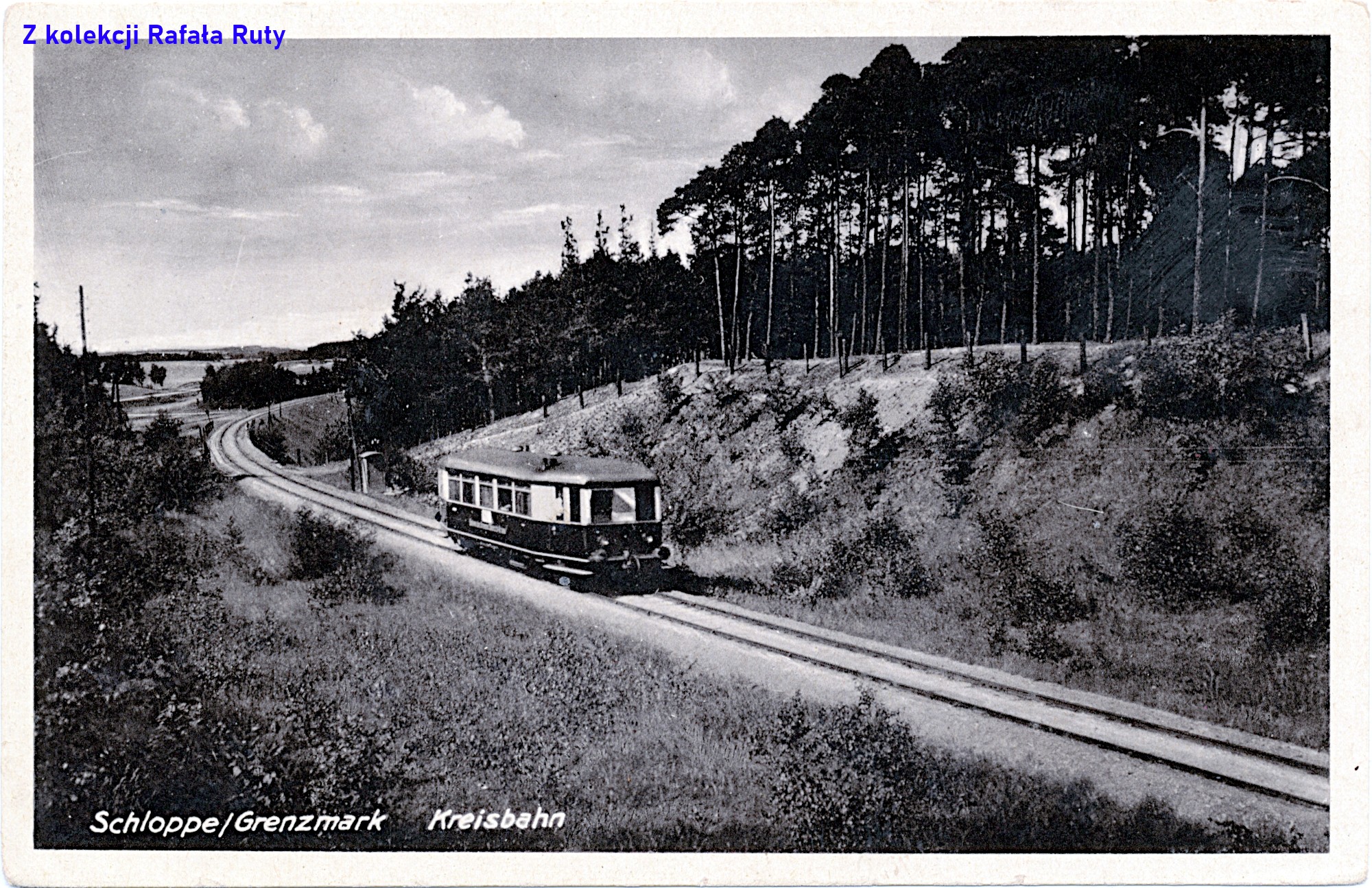 Podpis na kartce informuje, że oglądamy wagon motorowy podczas jazdy („Triebwagen auf Fahrt”). Jak już wiemy takie pojazdy na linii Wałcz-Człopa-Krzyż pojawić się miały w roku 1935. To zawęża nam czas wykonania zdjęcia na lata 1935-1940. Porę dnia pomagają sprecyzować cienie rzucane przez „szynobus” i drzewa na dalszym planie – wydaje się, że było to południe lub wczesne popołudnie. Zważywszy na fakt, że na prawym reflektorze wagonu motorowego odznacza się okrągła biało-czerwona tabliczka oznaczająca koniec pociągu, wiemy że to kurs z Wałcza. Zachowane rozkłady jazdy pociągów na trasie Wałcz-Człopa z tamtych lat sugerują, że fotograf „zapolował” na to ujęcie tuż przed godziną 12.00 lub 15.00.