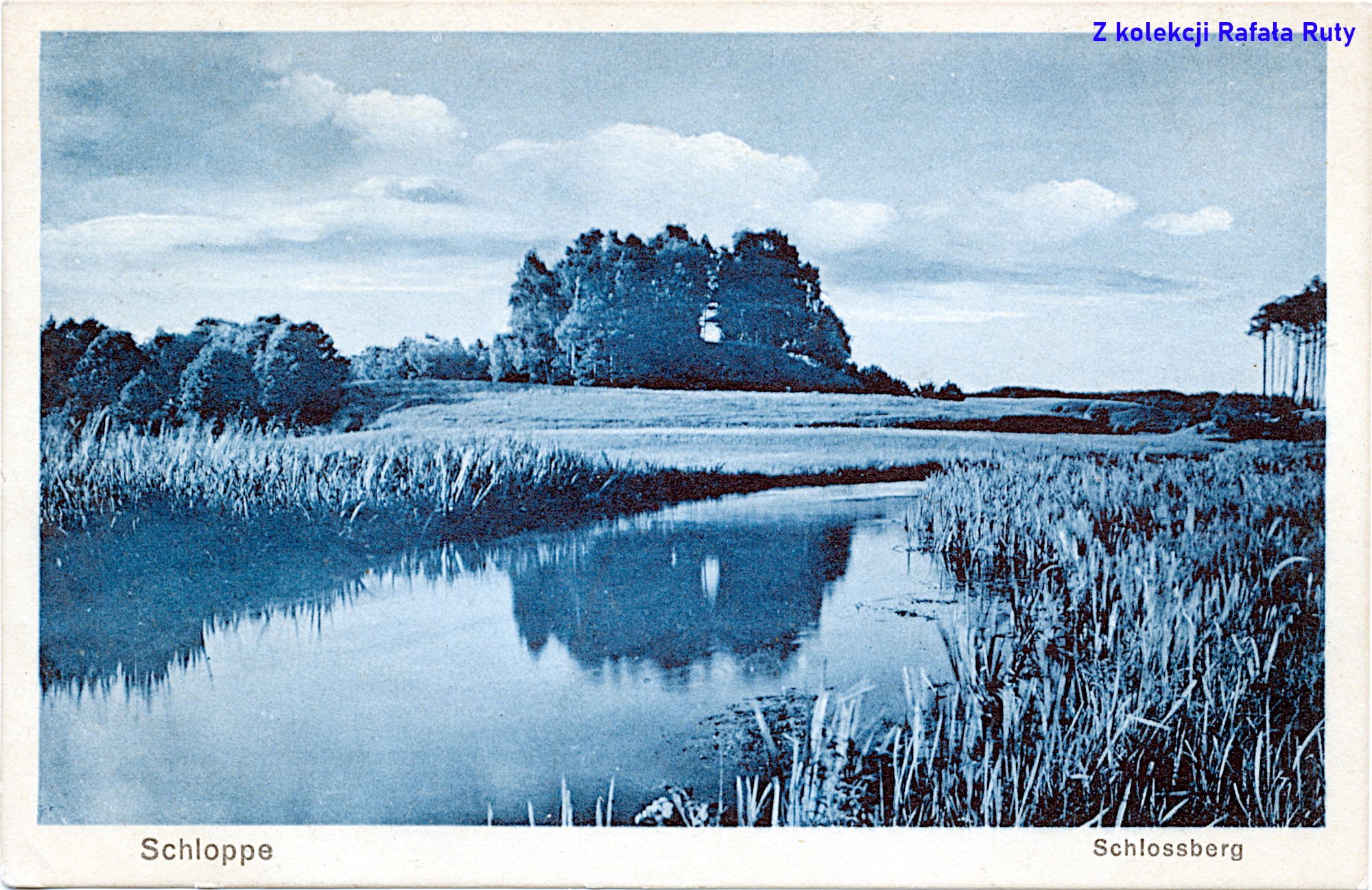 Warto zwrócić uwagę (na tej, jak i na innych pocztówkach), jak daleko od brzegów jezior i rzek znajdowała się wtedy linia lasu. Wynikało to z wykorzystywania nadbrzeżnych gruntów dla celów uprawnych i hodowlanych. Spotkałem się też kiedyś ze stwierdzeniem, że Niemcy nie chcieli, by do wody wpadały w większych ilościach uschnięte liście i zalegały w korycie rzeki – stąd drzewa „trzymali na dystans” od niego.