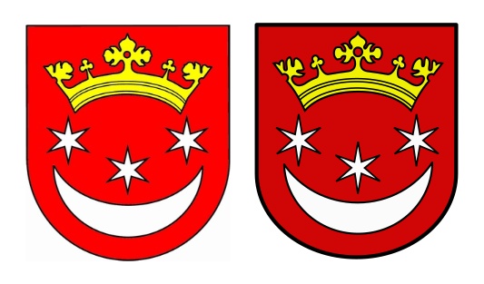 Na pieczęci z datą roczną 1601 widnieje w górnej części korona, poniżej trzy, tworzące półkole, sześciopromienne gwiazdy i poniżej sierp zwróconego ku górze półksiężyca. Kolory i znaczenie są nieznane.