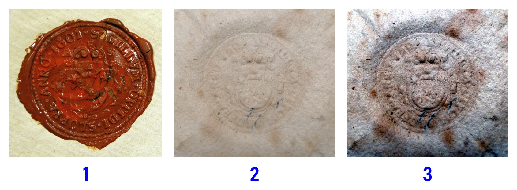 1. Odciśnięta w laku, list cechowy ze zbiorów Archiwum Państwowego w Bydgoszczy – data wystawienia, zespół i sygnatura nieznane;